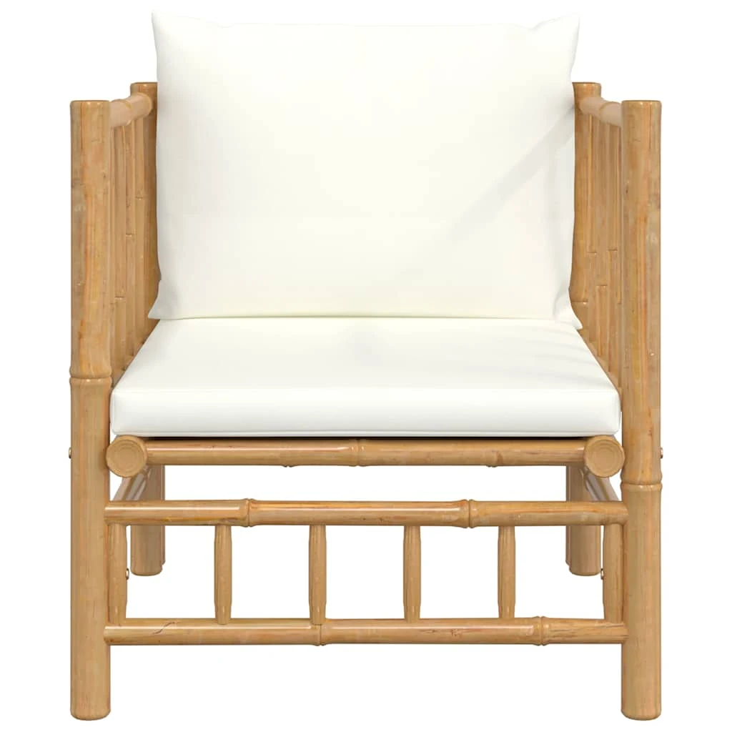 vidaXL dārza dīvāns ar krēmbaltiem matračiem, bambuss