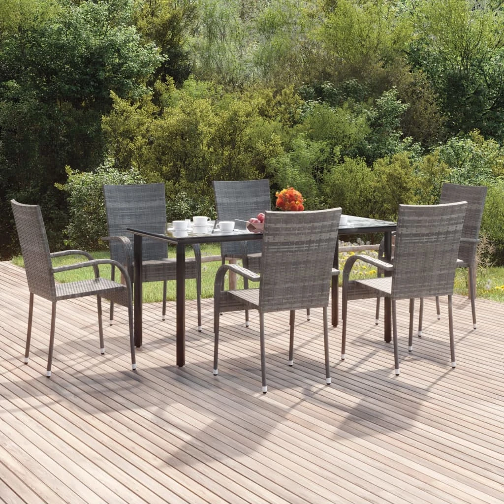 vidaXL 7-daļīgs dārza mēbeļu komplekts, pelēka PE rotangpalma