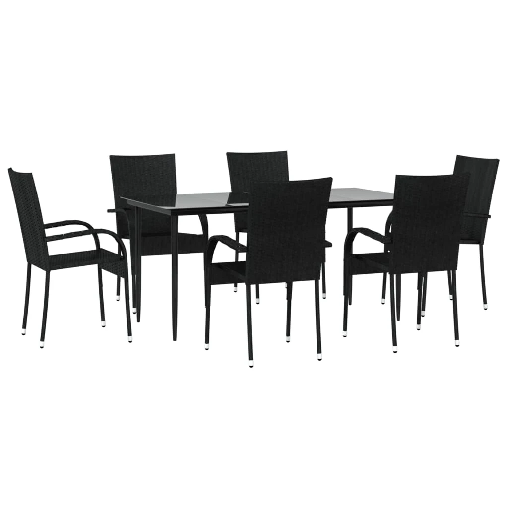 vidaXL 7-daļīgs dārza mēbeļu komplekts, melns, PE rotangpalma