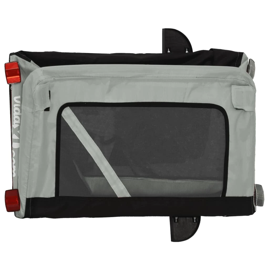 vidaXL mājdzīvnieku velo piekabe, melna ar pelēku, audums un dzelzs