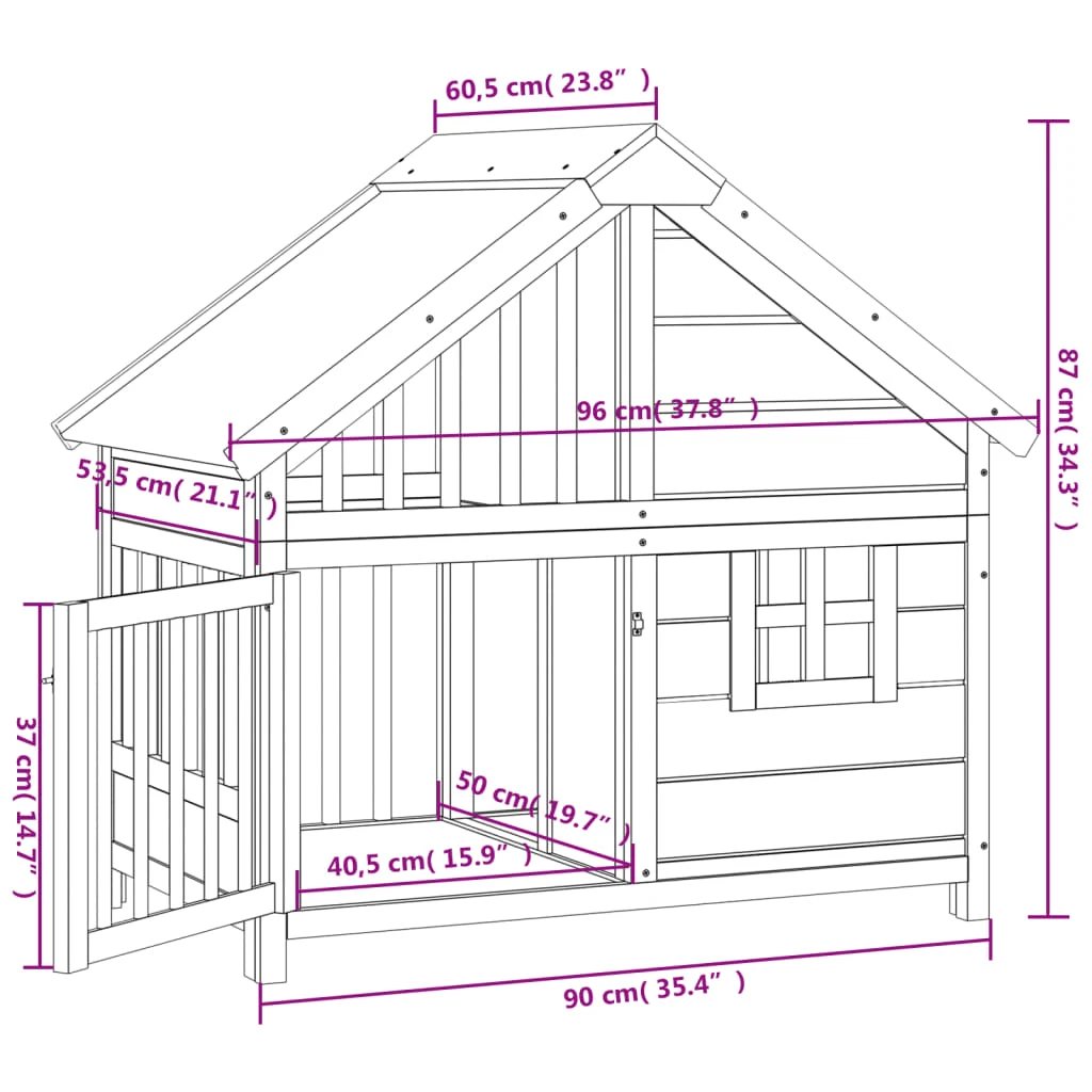 vidaXL suņu būris, pelēks, 96x60,5x87 cm, priedes masīvkoks