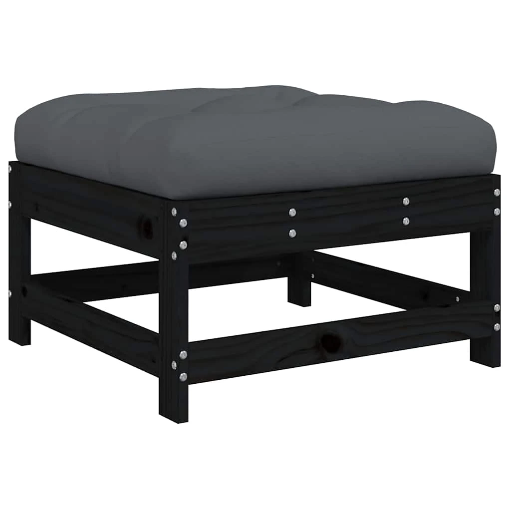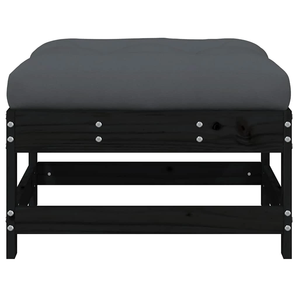 vidaXL dārza soliņš ar matraci, melns priedes masīvkoks