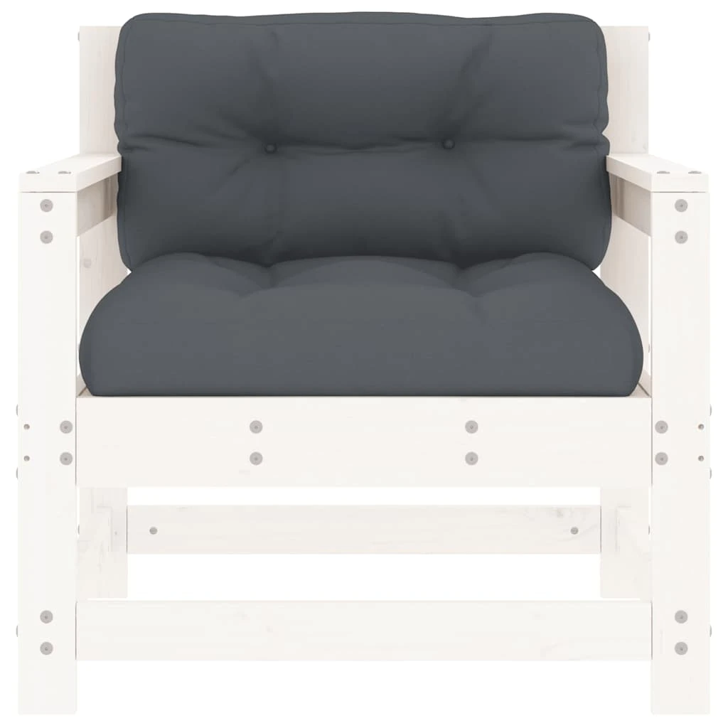 vidaXL dārza krēsli ar matračiem, 2 gab., balts priedes masīvkoks