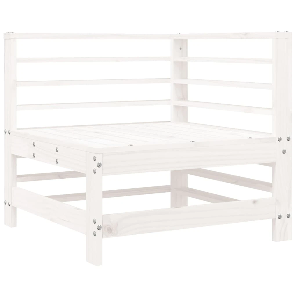 vidaXL stūra dīvāns ar matračiem, balts priedes masīvkoks