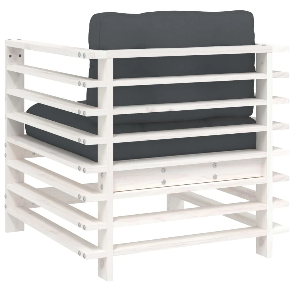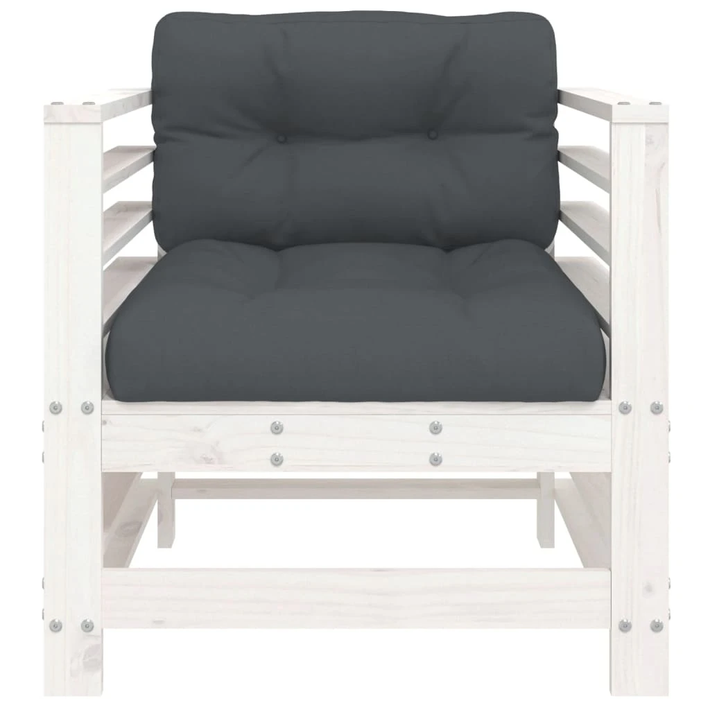 vidaXL dārza krēsli ar matračiem, 2 gab., balts priedes masīvkoks