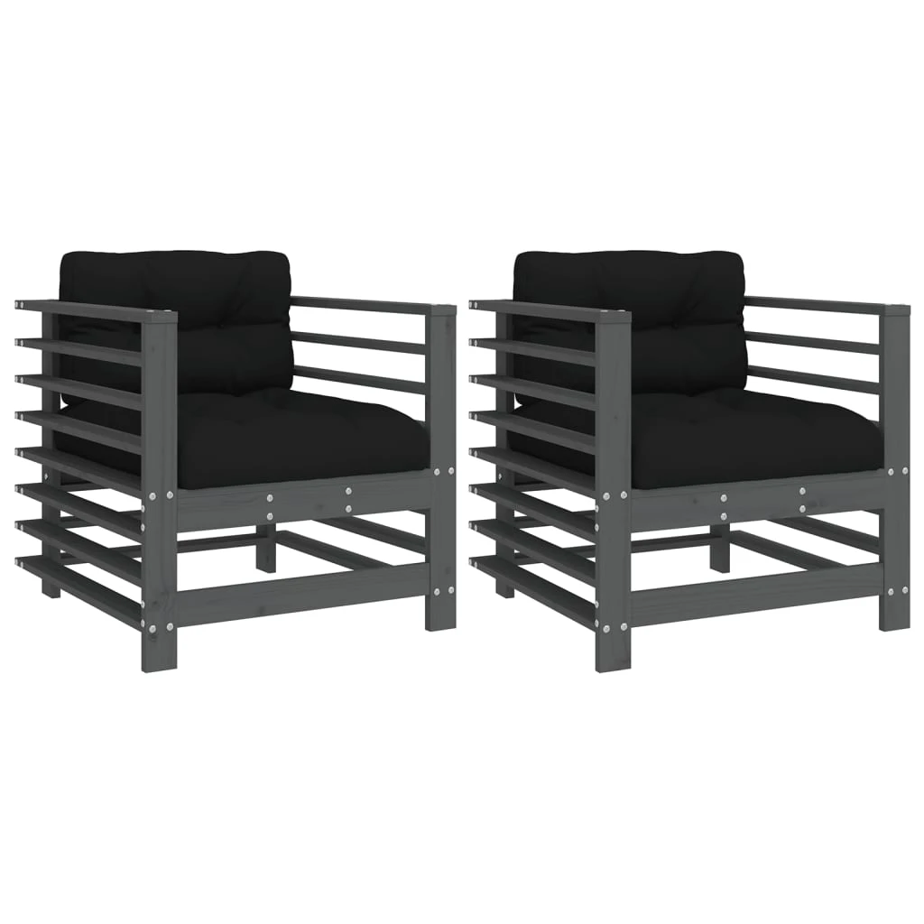vidaXL dārza krēsli ar matračiem, 2 gab., pelēks priedes masīvkoks