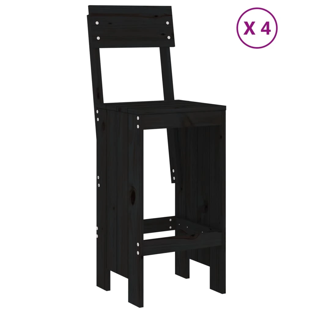 vidaXL 5-daļīgs dārza bāra mēbeļu komplekts, priedes masīvkoks, melns