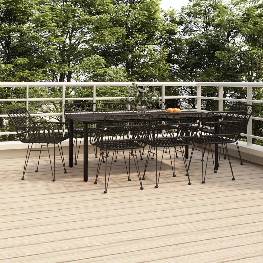 vidaXL 9-daļīgs dārza mēbeļu komplekts, PE rotangpalma, melns