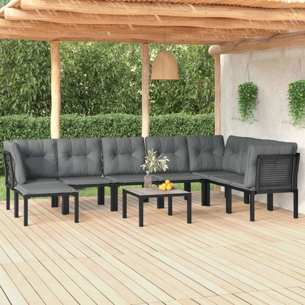 vidaXL 9-daļīgs dārza mēbeļu komplekts, melna un pelēka PE rotangpalma