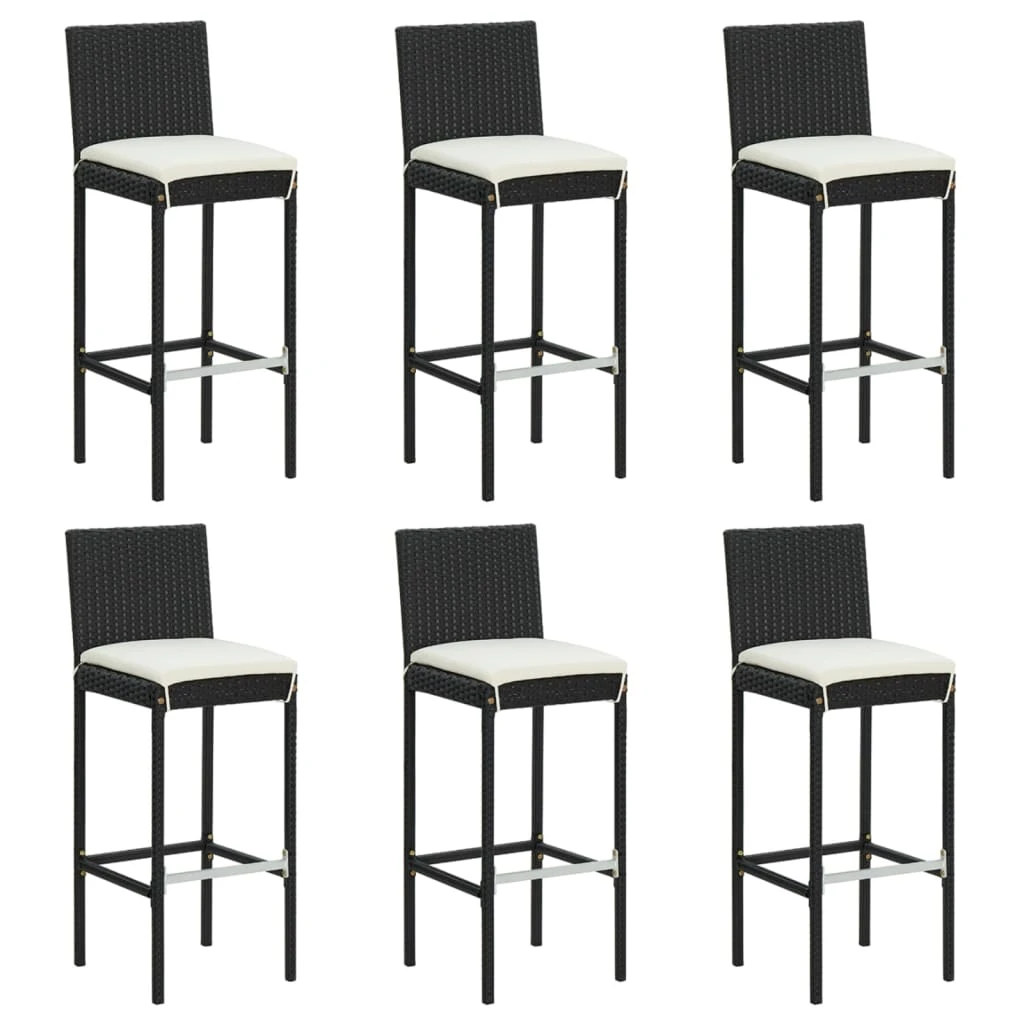 vidaXL 7-daļīgs dārza bāra mēbeļu komplekts ar matračiem, PE, melns