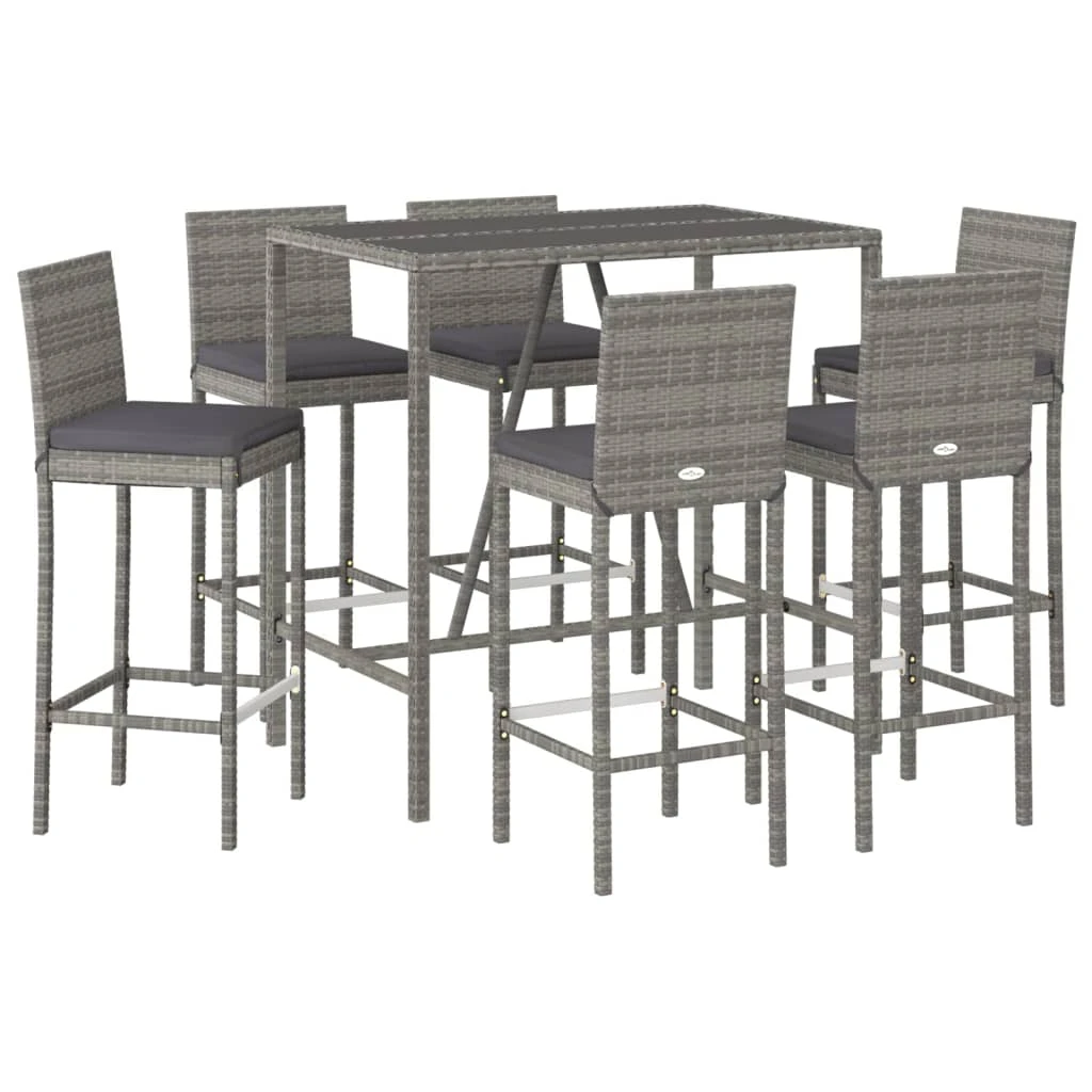 vidaXL 7-daļīgs dārza bāra komplekts ar matračiem, PE rotangpalma