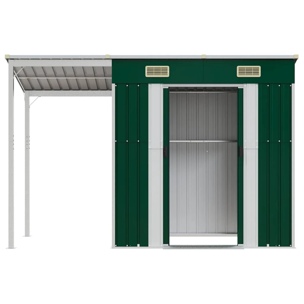 vidaXL dārza šķūnis ar pagarinātu jumtu, 277x107x181 cm, tērauds