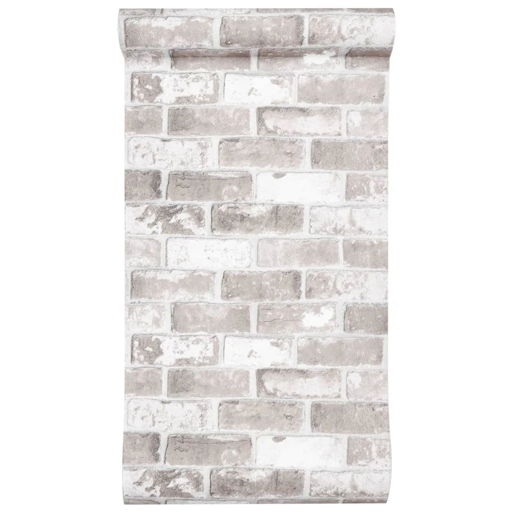 vidaXL tapete, 3D ķieģeļu dizains, pelēka, 10x0,53 m, neausta