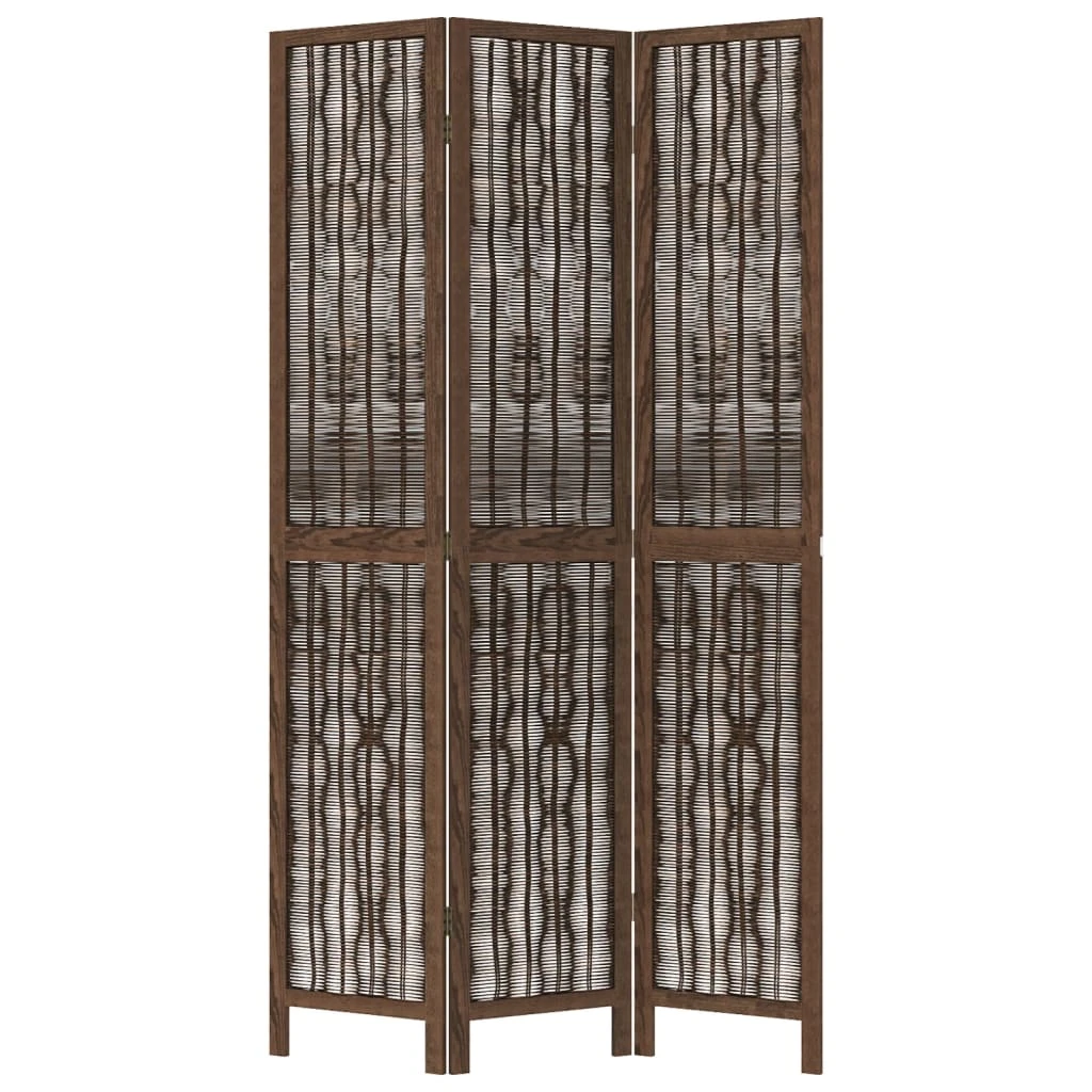 vidaXL 3-paneļu istabas aizslietnis, tumši brūns, paulonijas masīvkoks