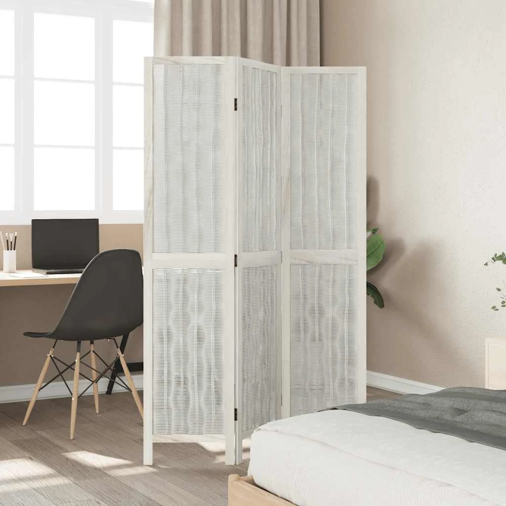 vidaXL 3-paneļu istabas aizslietnis, balts, paulonijas masīvkoks