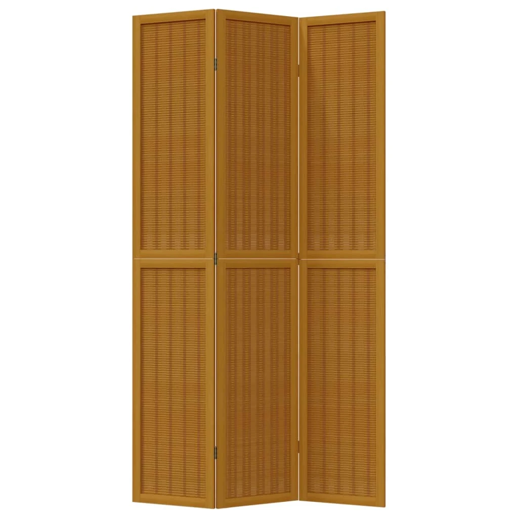 vidaXL 3-paneļu istabas aizslietnis, brūns, paulonijas masīvkoks