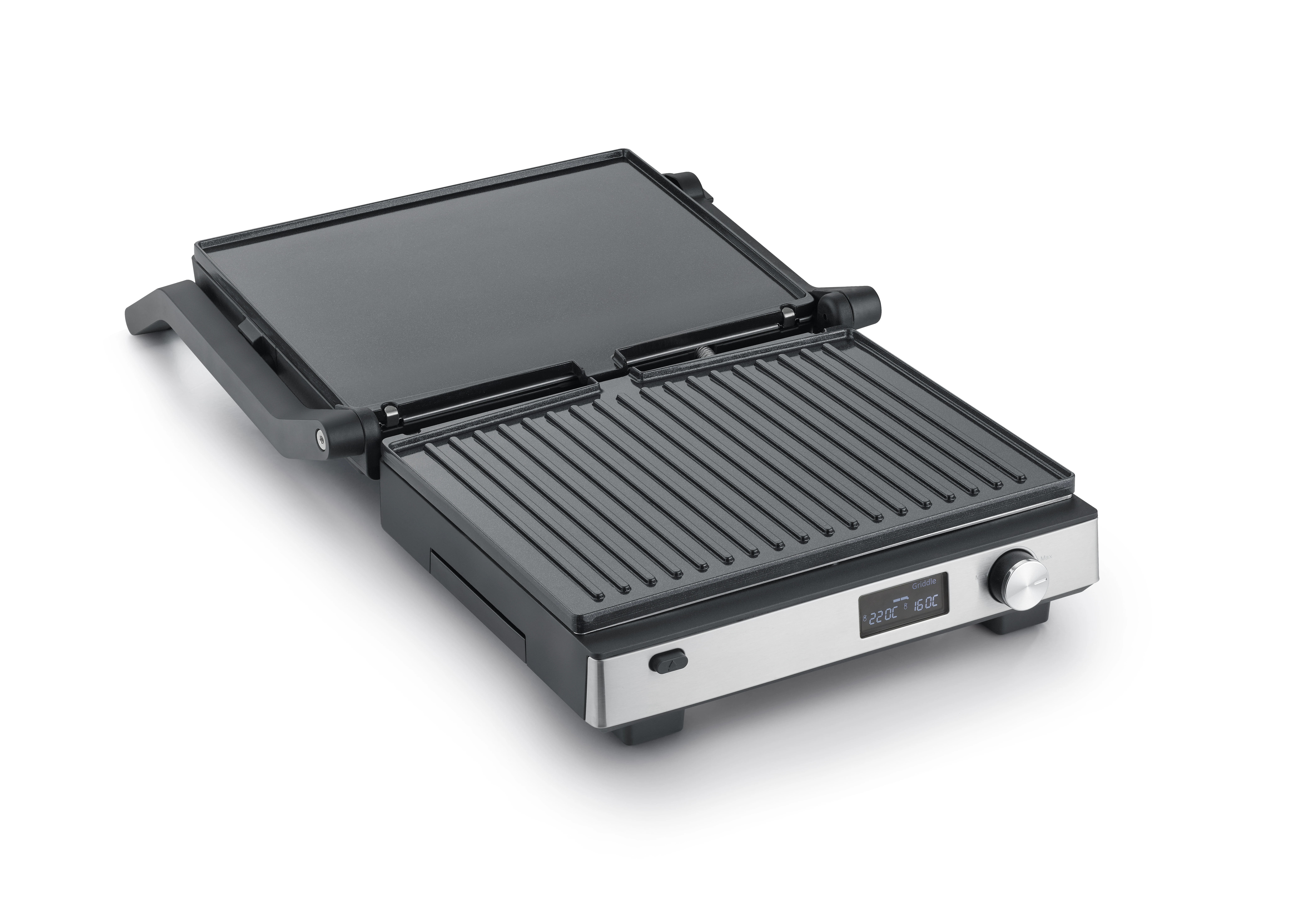 (29 x 23 cm) līdz pat četrām burgeru kotletēm, sviestmaizēm vai Beļģijas vafelēm