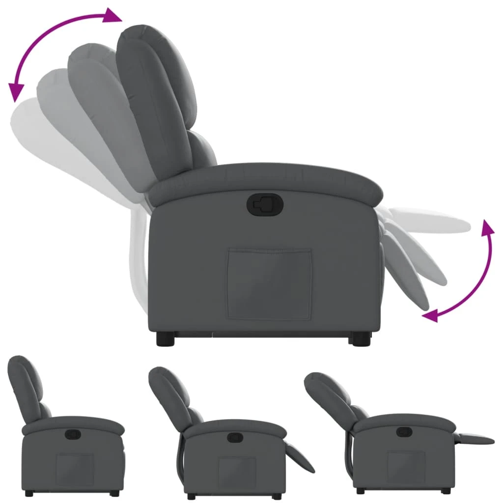 vidaXL atpūtas krēsls, paceļams, atgāžams, pelēka mākslīgā āda