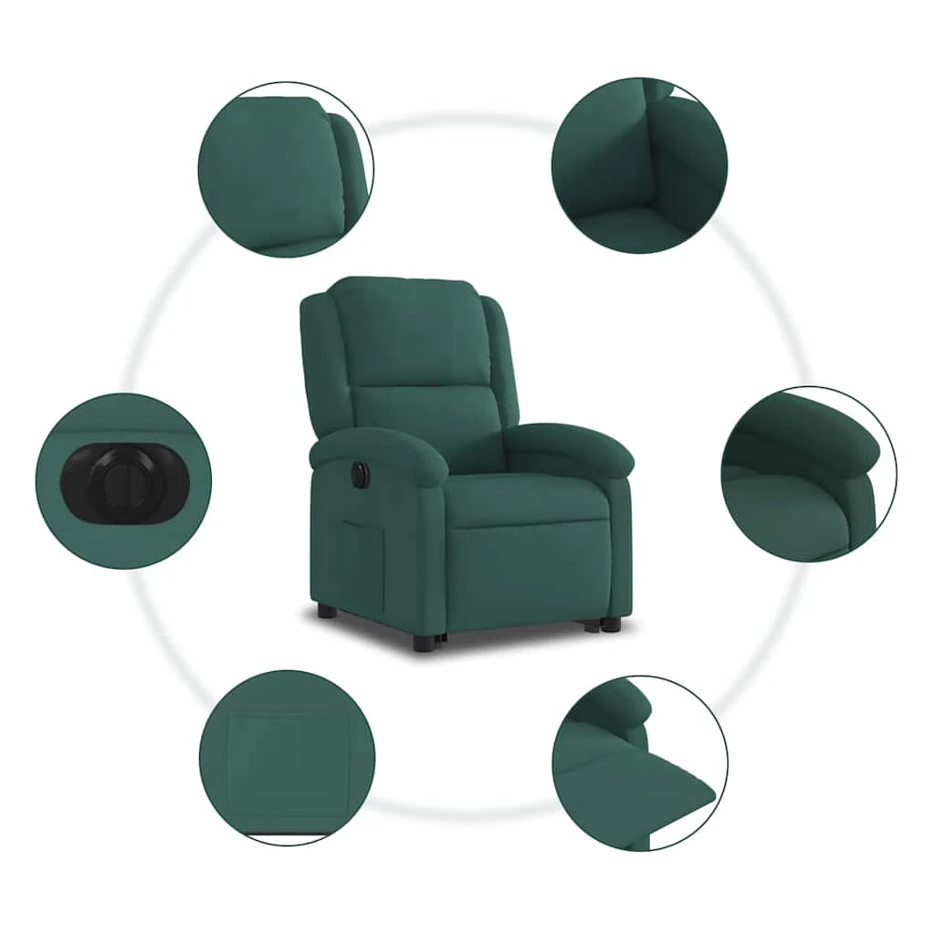 vidaXL elektrisks atpūtas krēsls, paceļams-atgāžams, tumši zaļš samts