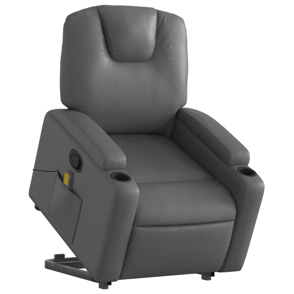 vidaXL masāžas krēsls, paceļams, atgāžams, pelēka mākslīgā āda