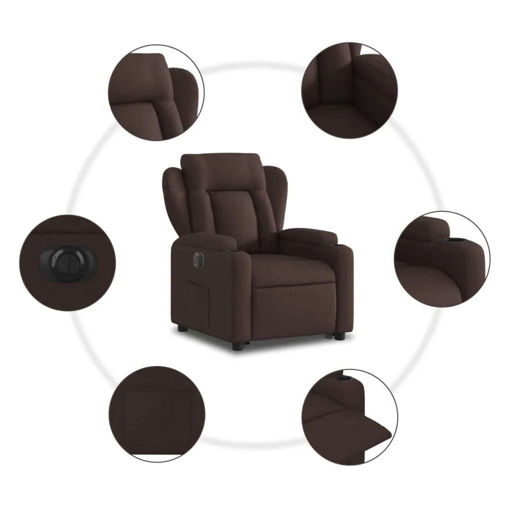vidaXL elektrisks atpūtas krēsls, paceļams-atgāžams tumši brūns audums