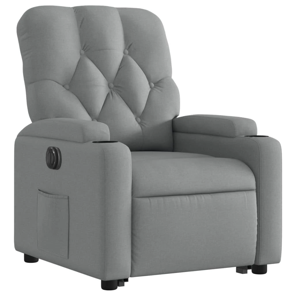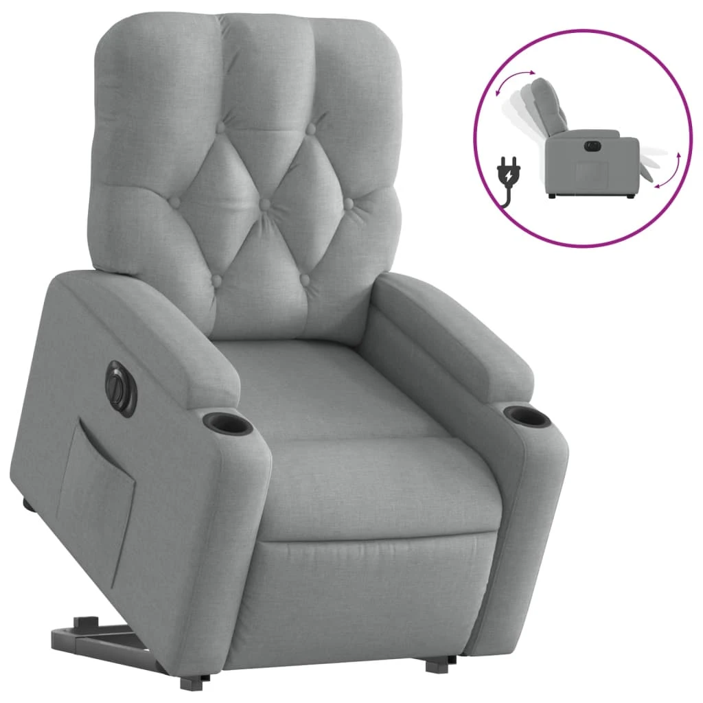 vidaXL elektrisks atpūtas krēsls paceļams-atgāžams gaiši pelēks audums
