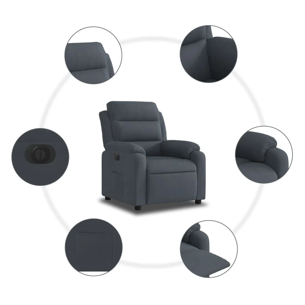 vidaXL elektrisks atpūtas krēsls, atgāžams, tumši pelēks samts