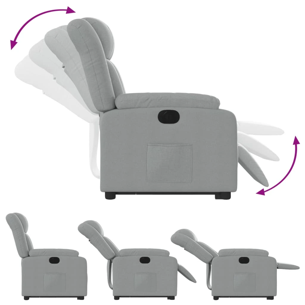 vidaXL elektrisks atpūtas krēsls paceļams-atgāžams gaiši pelēks audums
