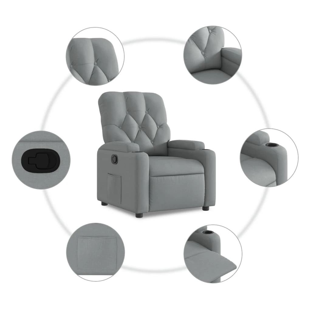 vidaXL atpūtas krēsls, atgāžams, gaiši pelēks audums