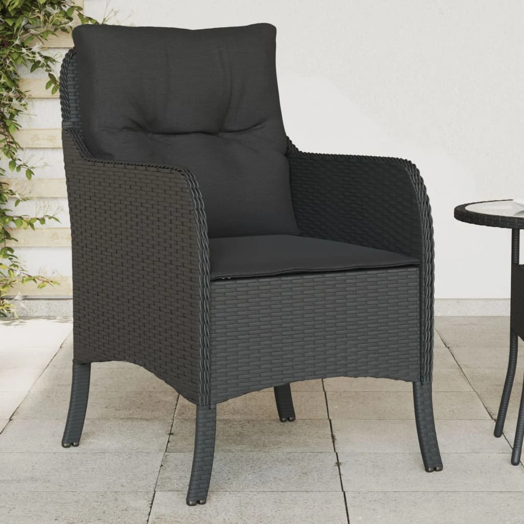 vidaXL dārza krēsli, 2 gab., ar matračiem, melna PE rotangpalma