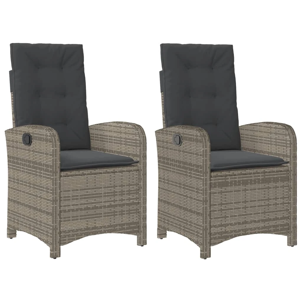 vidaXL atgāžami dārza krēsli, 2 gab., matrači, pelēka PE rotangpalma