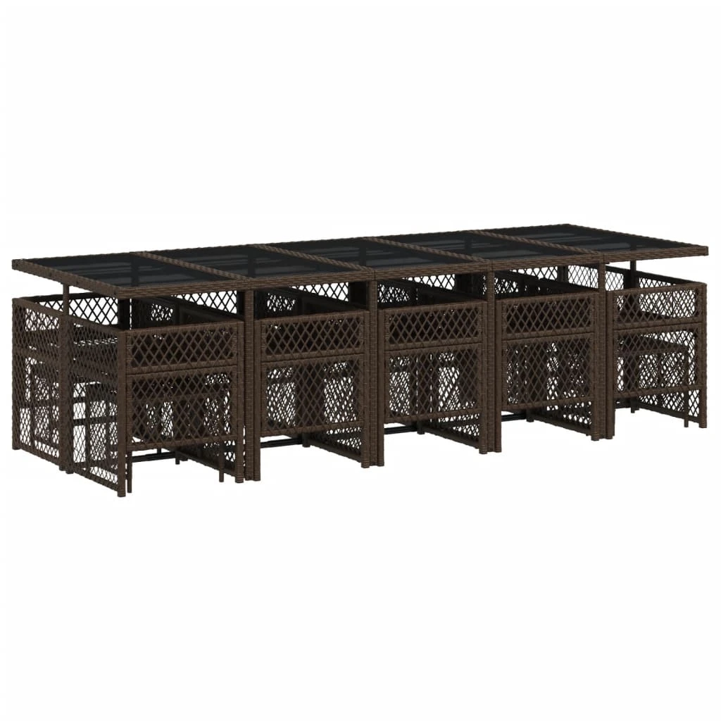 vidaXL 15-daļīgs dārza mēbeļu komplekts, matrači, brūna PE rotangpalma