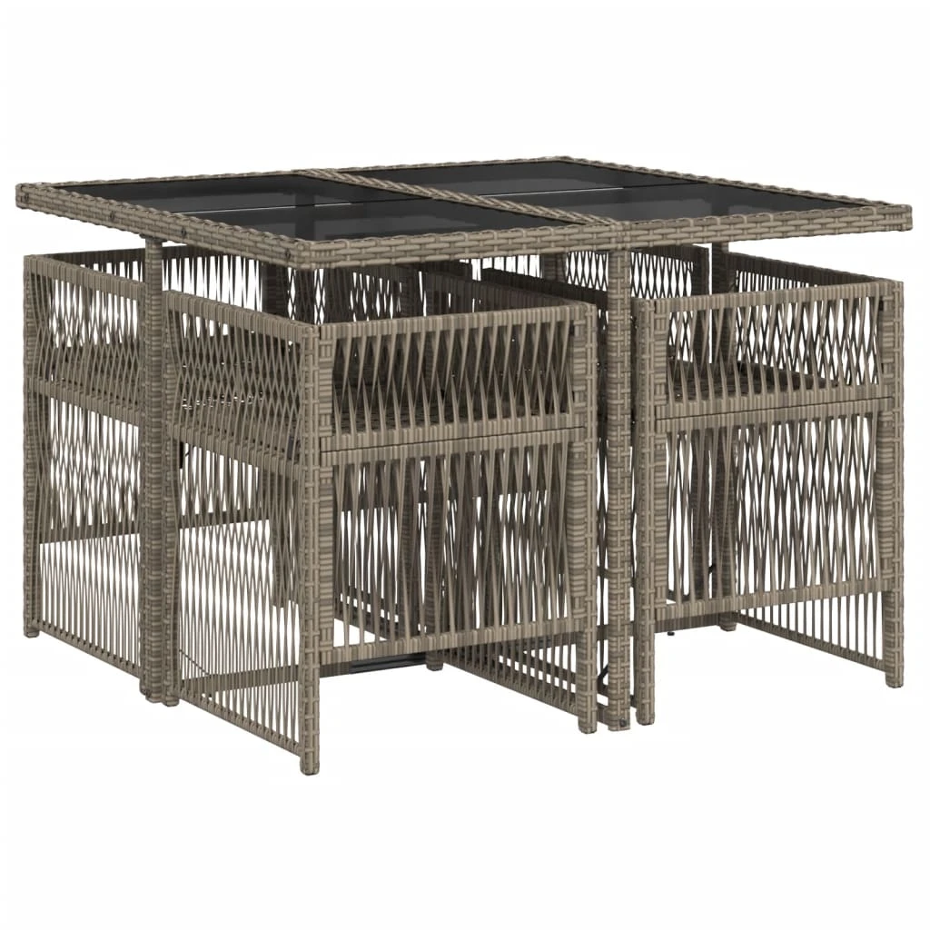 vidaXL 5-daļīgs dārza mēbeļu komplekts, matrači, pelēka PE rotangpalma