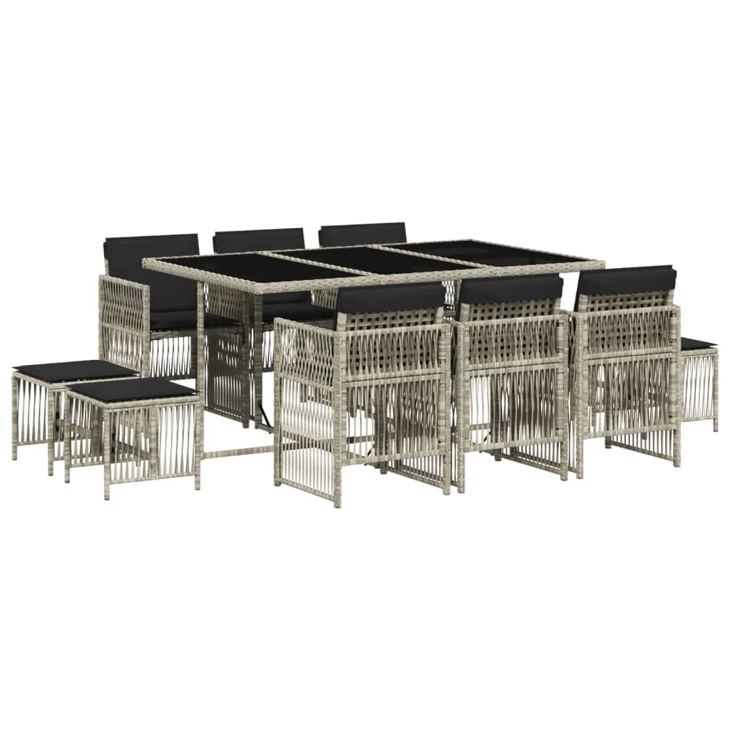 vidaXL 11-daļīgs dārza mēbeļu komplekts ar matračiem, gaiši pelēka PE
