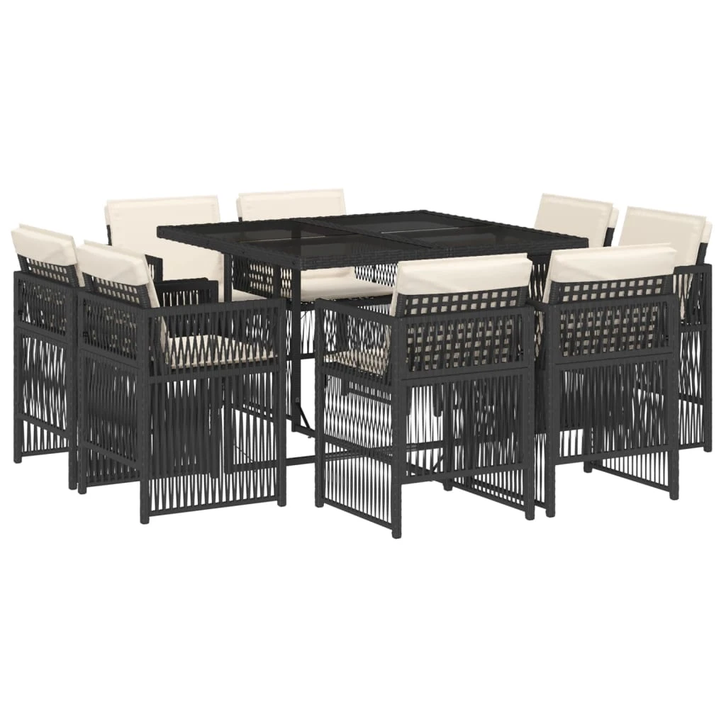 vidaXL 9-daļīgs dārza mēbeļu komplekts, matrači, melns, PE rotangpalma