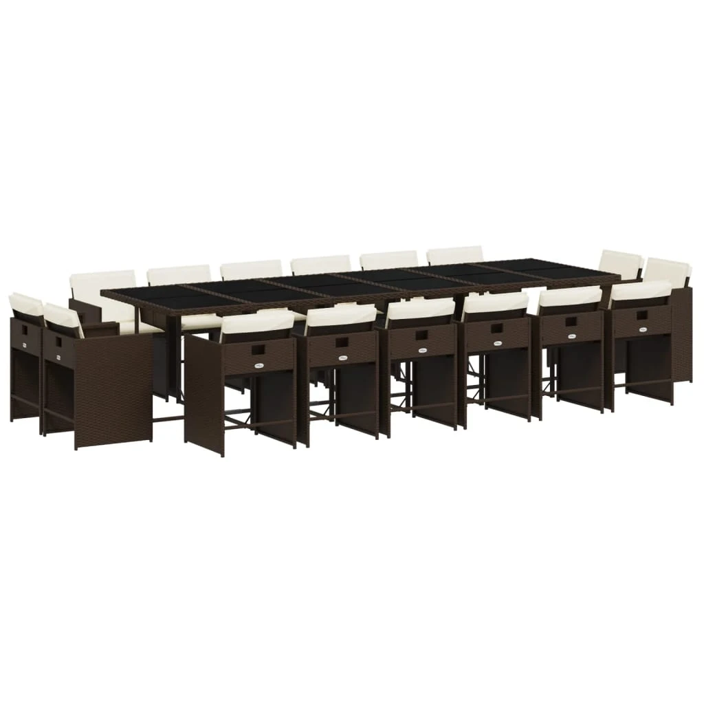 vidaXL 17-daļīgs dārza mēbeļu komplekts, matrači, brūna PE rotangpalma