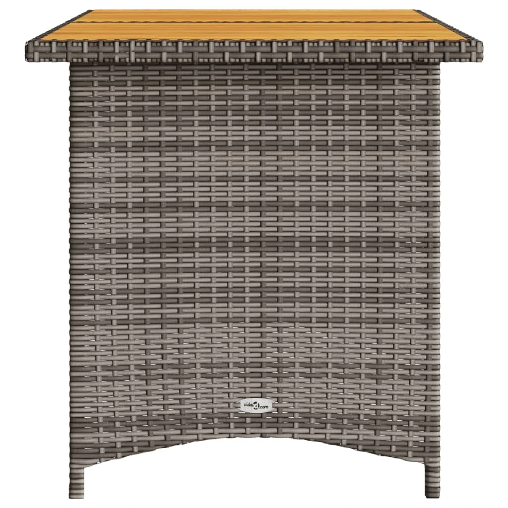 vidaXL dārza galds, koka virsma, pelēks, 110x68x70 cm, PE rotangpalma