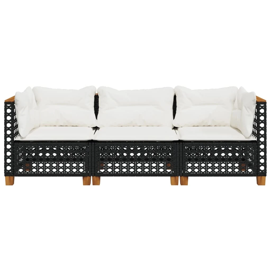 vidaXL trīsvietīgs dārza dīvāns ar matračiem, melna PE rotangpalma