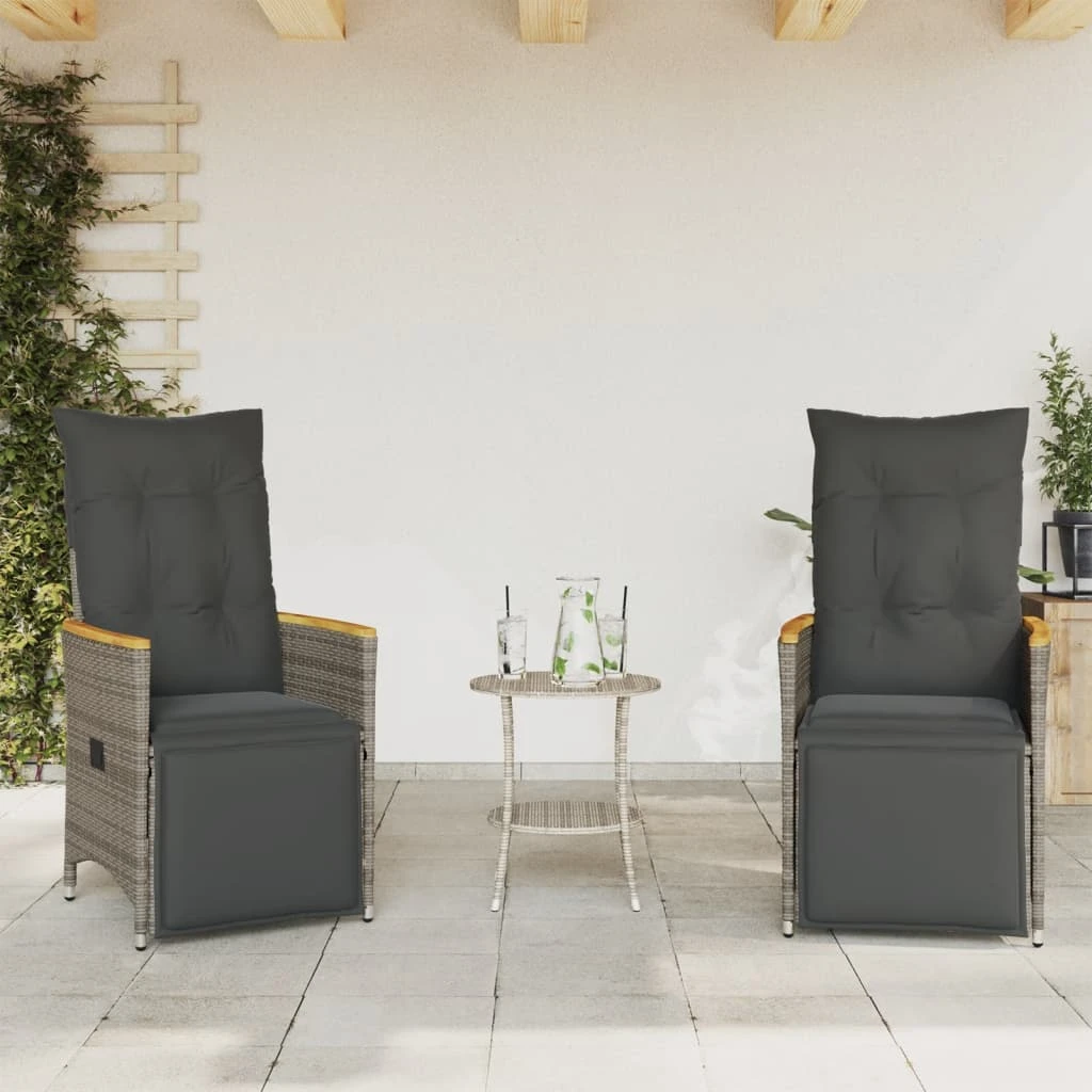 vidaXL 3-daļīgs bistro mēbeļu komplekts, matrači,pelēka PE rotangpalma