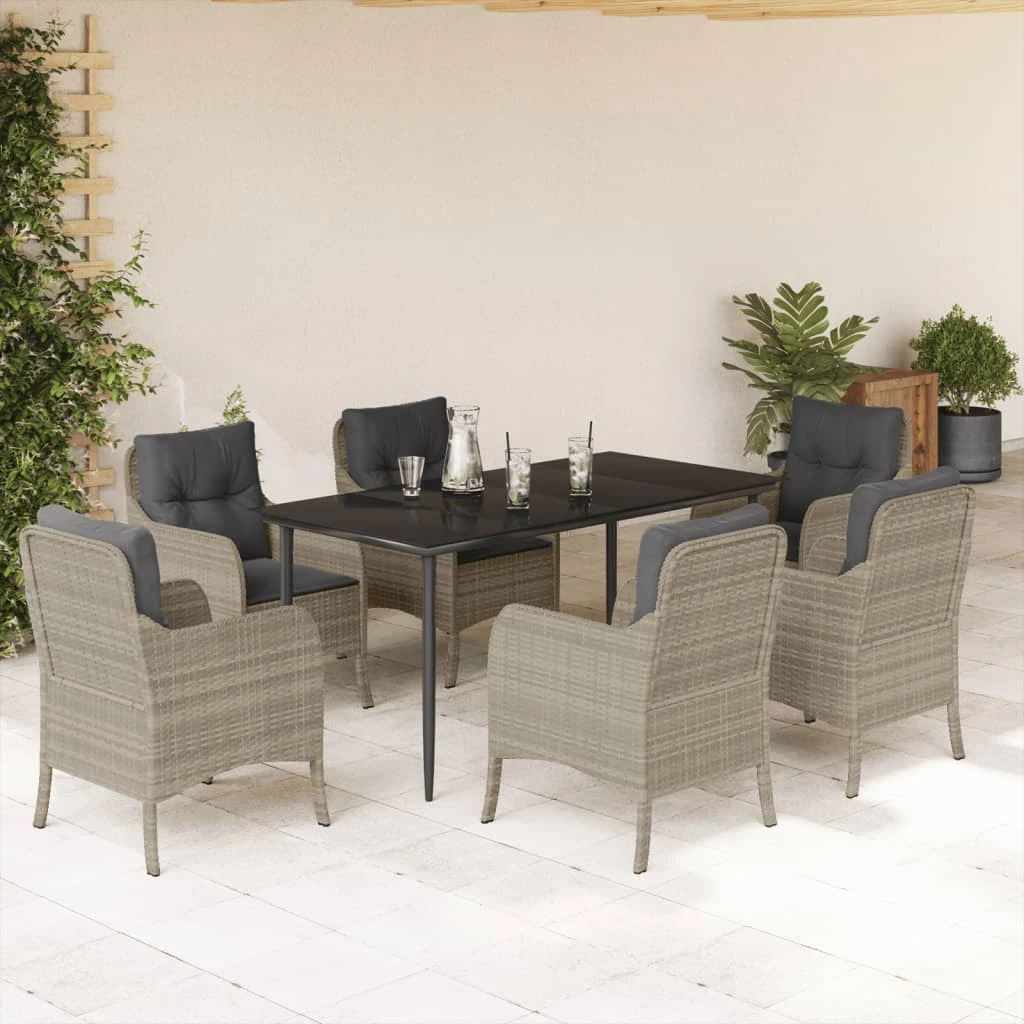 vidaXL 7-daļīgs dārza mēbeļu komplekts, matrači,gaiši pelēka PE pinums