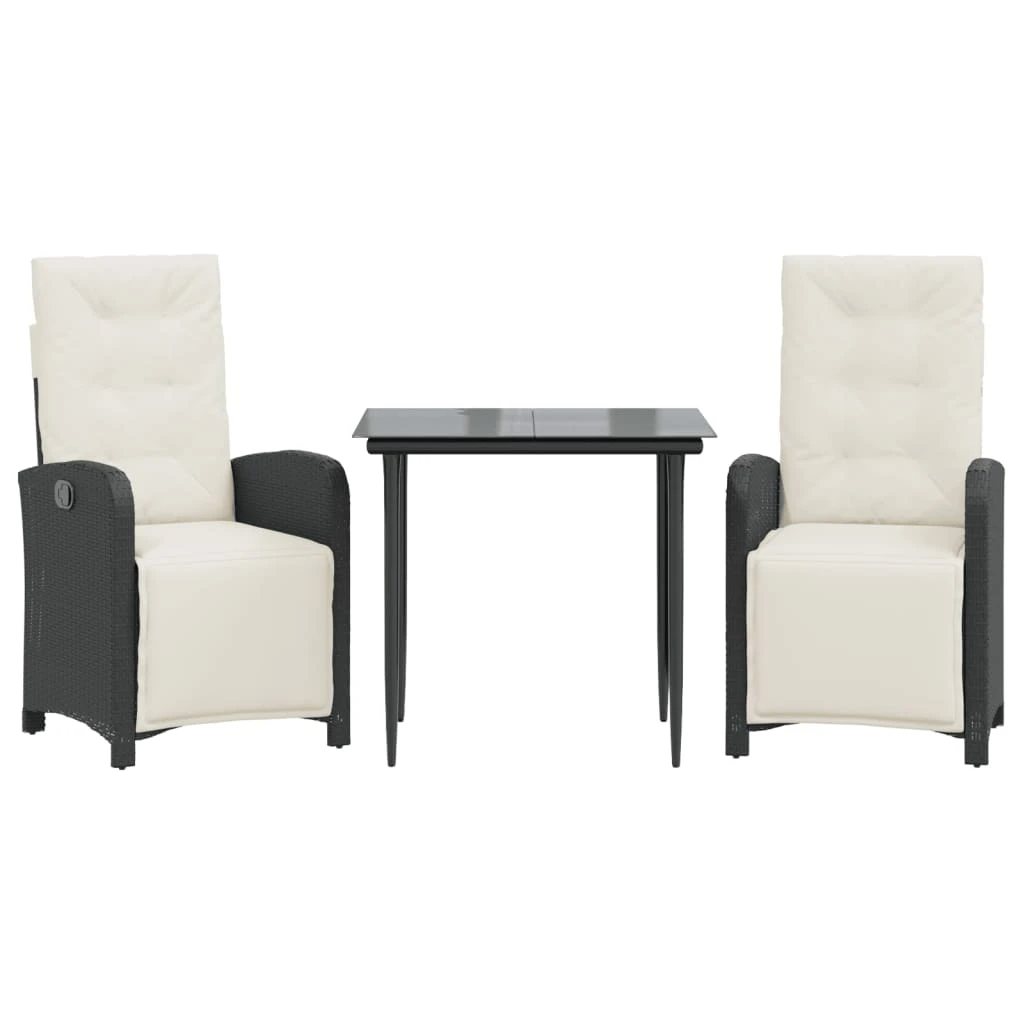 vidaXL 3-daļīgs bistro mēbeļu komplekts, matrači, melna PE rotangpalma