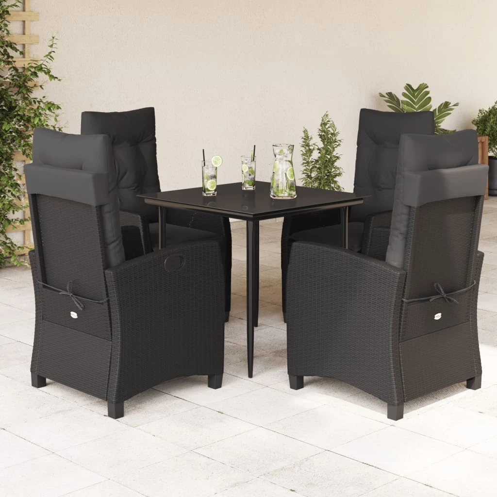 vidaXL 5-daļīgs dārza mēbeļu komplekts, matrači, melna PE rotangpalma