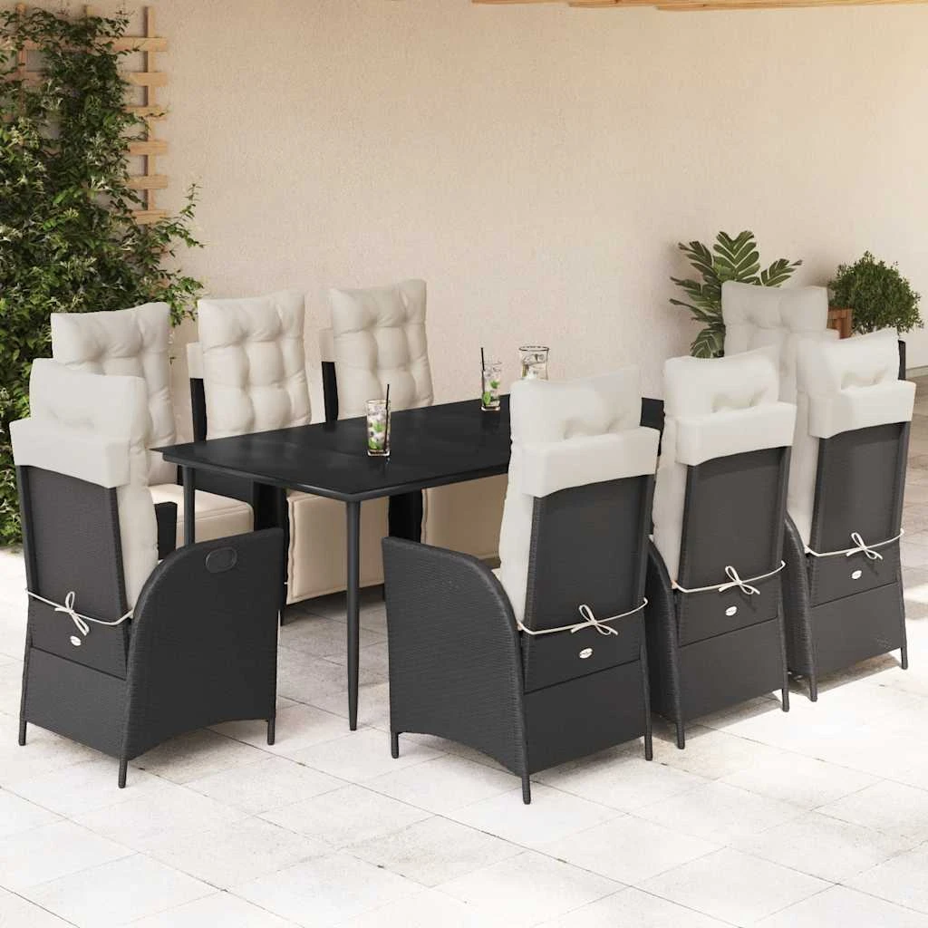 vidaXL 9-daļīgs dārza mēbeļu komplekts, matrači, melns, PE rotangpalma