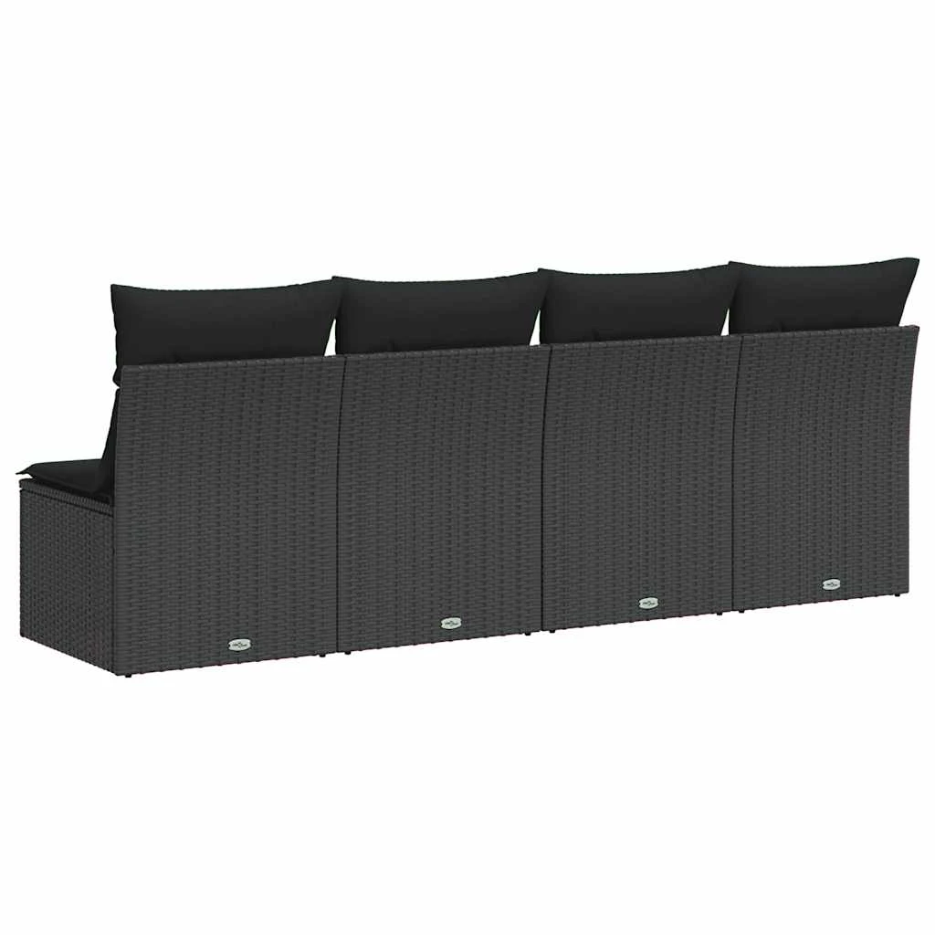 vidaXL dārza dīvāns ar spilveniem, 4 sēdvietas, melns polietilēna rotangpalmas audums