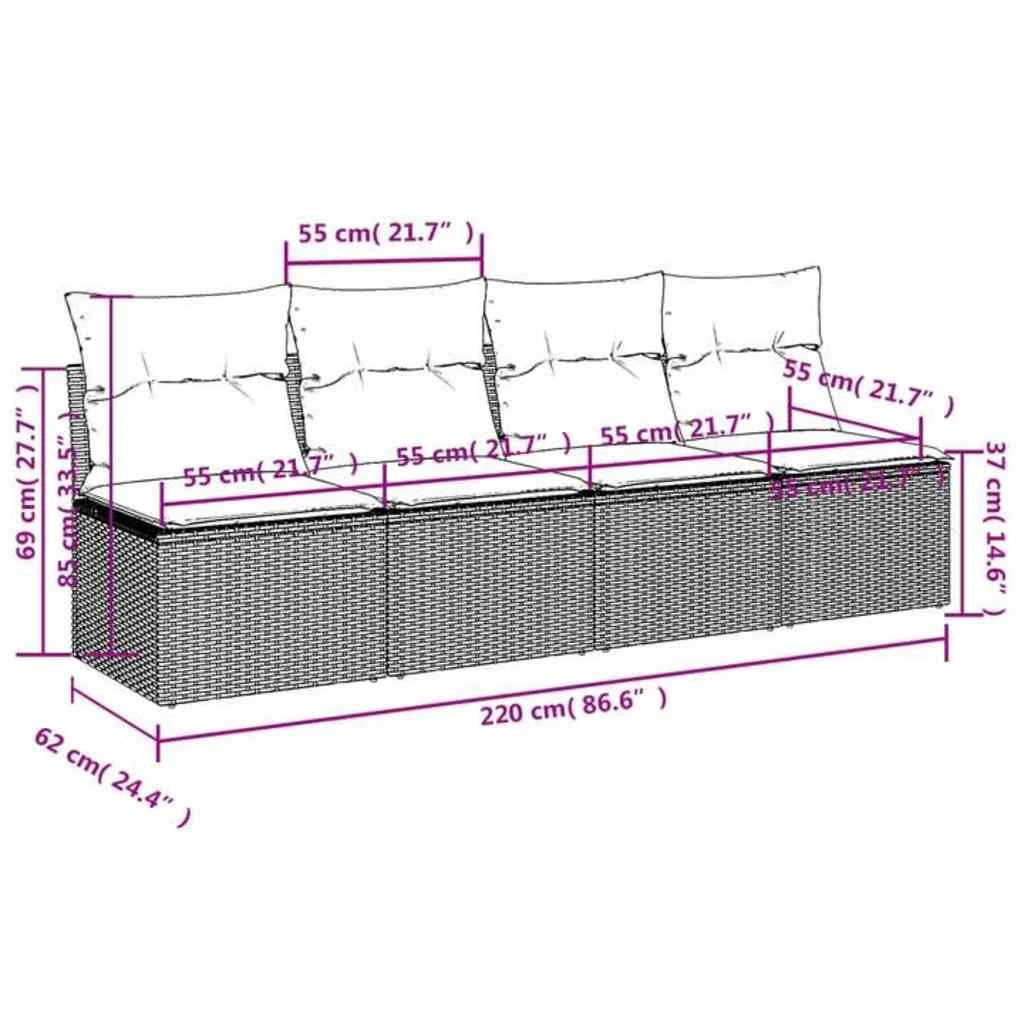 vidaXL četrvietīgs dārza dīvāns ar matračiem, melna PE rotangpalma