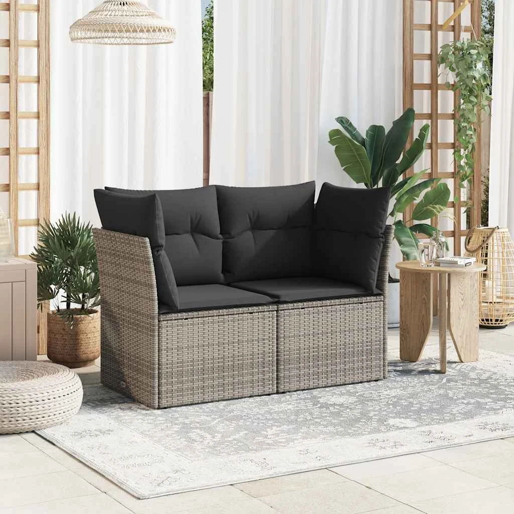 vidaXL divvietīgs dārza dīvāns ar matračiem, pelēka PE rotangpalma