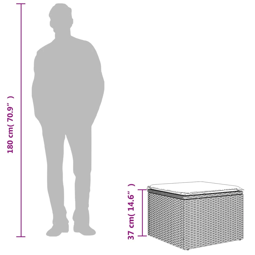 vidaXL dārza soliņš ar matraci, pelēka PE rotangpalma, 55x55x37 cm