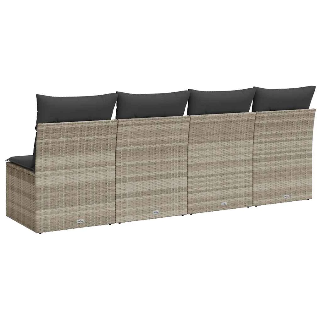 vidaXL četrvietīgs dārza dīvāns ar matračiem, gaiši pelēks, PE rotangpalma