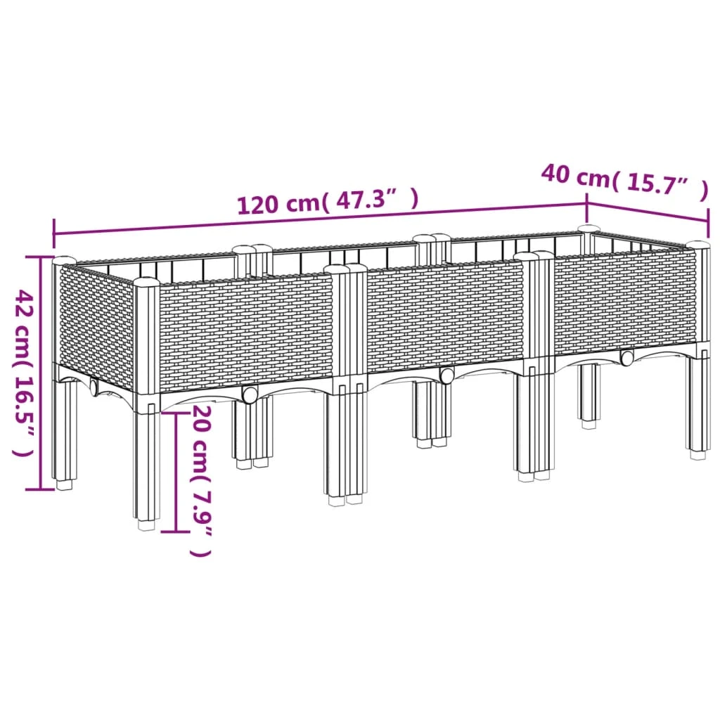 vidaXL dārza puķu kaste ar kājām, brūna, 120x40x42 cm, PP