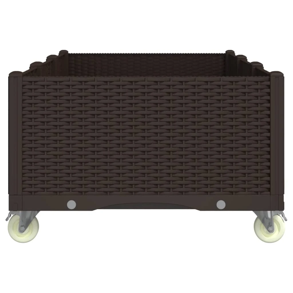 vidaXL dārza puķu kaste ar riteņiem, brūna, 150x80x54 cm, PP